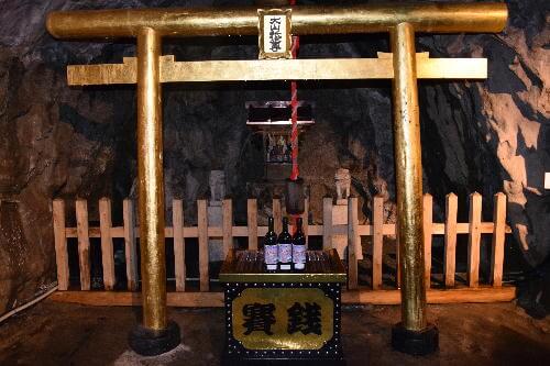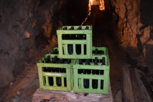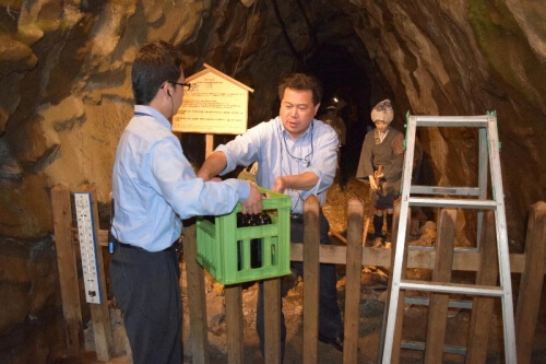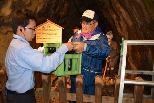 海底熟成ワインを土肥金山坑内で寝かせます。