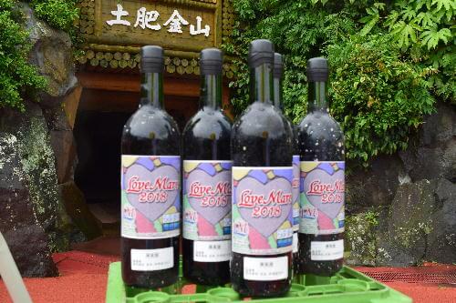このワインはこれから解禁日まで土肥金山の坑内で寝かせます。海の力でおいしくなったワインはこれから金運パワーでさらにおいしくなります!