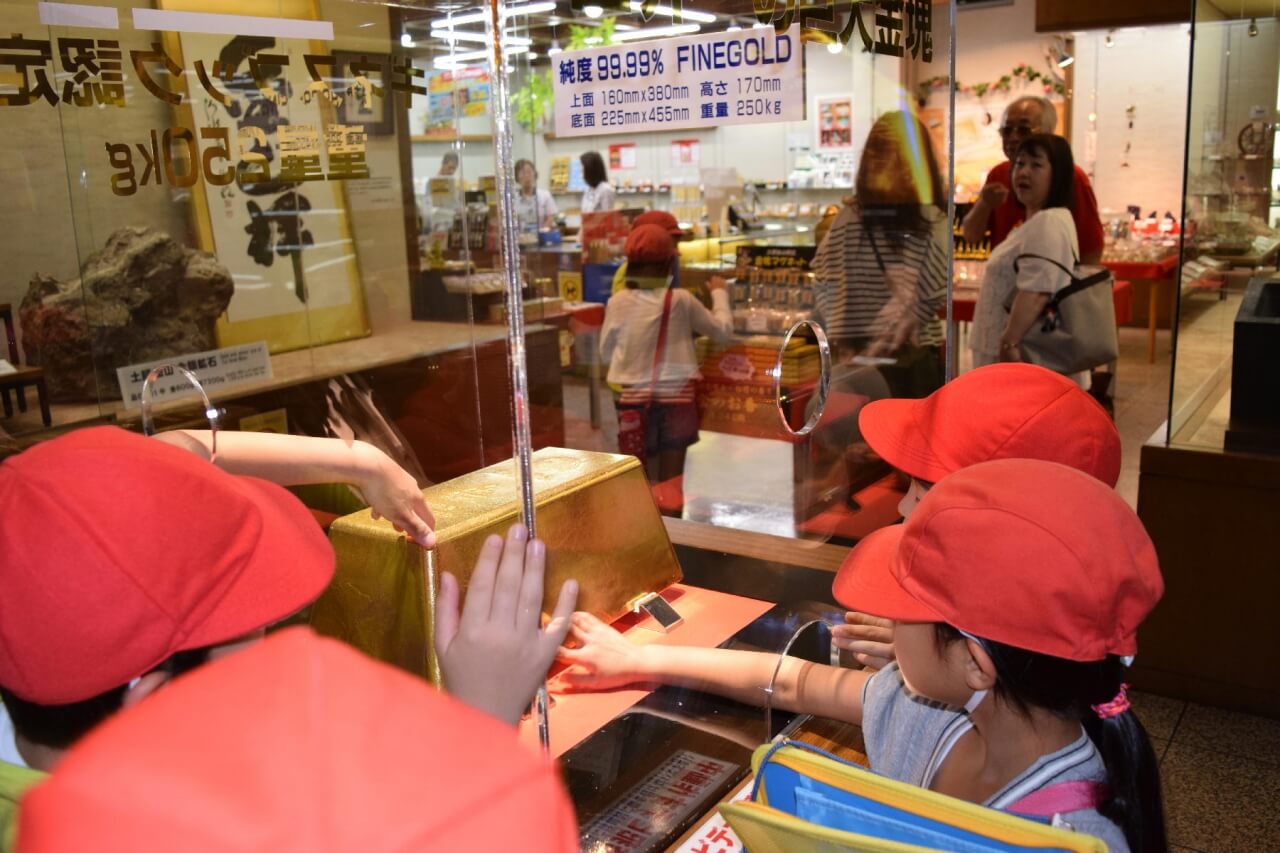 そして、土肥金山目玉の時価12億円250kgの巨大金塊を実感体験、大きさにビックリΣ(゚Д゚)