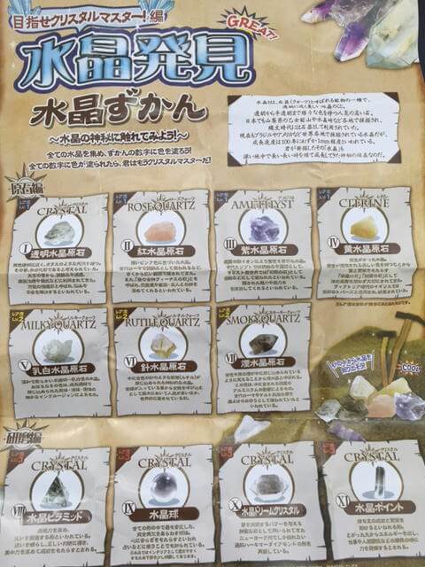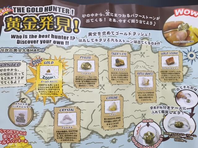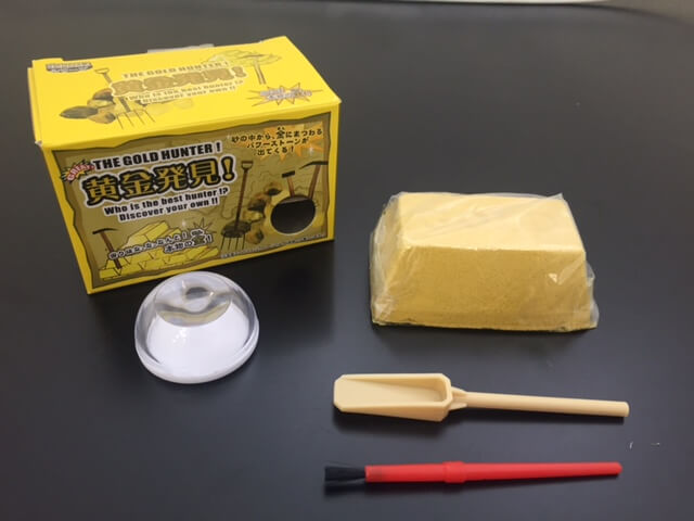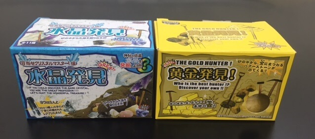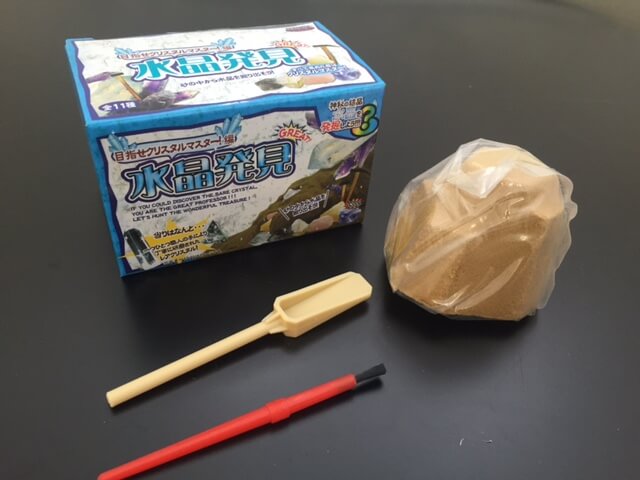 どちらも箱の中に砂の塊が入っており、専用のキットで掘り進めるとパワーストーンが1つ出てくるというものです。