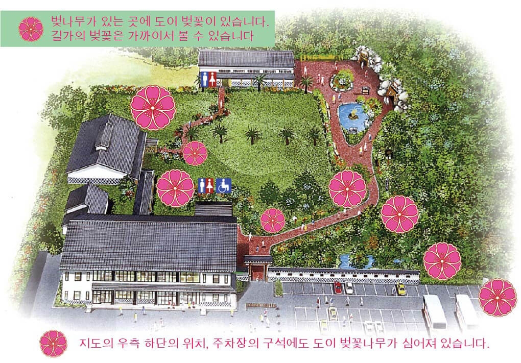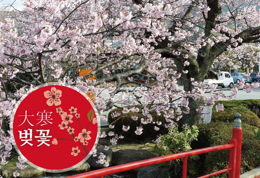 카와츠 벚꽃보다 개화가 빠르고 12월 중순부터 꽃봉오리가 맺기 시작해 1월 중순부터 개화하여 2월 중순까지 약2개월간 피어있습니다. 잎의 색깔이 진홍빛, 꽃자루가 길어 가지에 6~7개 꽃을 달아 벚꽃 나무 전체가 화려하게 붉게 물듭니다.